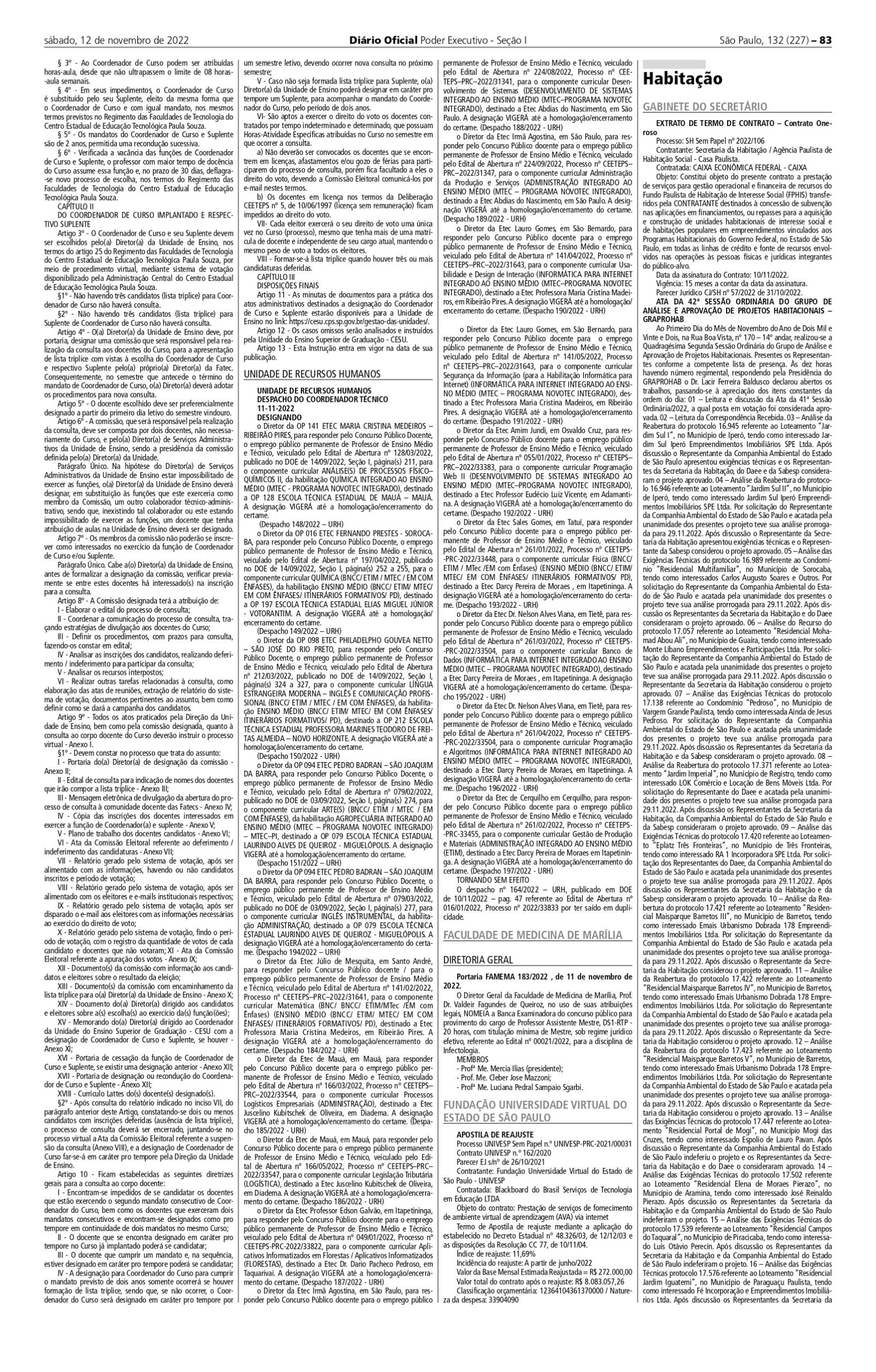 Informamos que, conforme publicação no Diário Oficial do Estado de 12/11/2022, Seção Executivo I, página 83, houve designação da Etec Júlio de Mesquita, de Santo André, para responder pelo Edital 141/02/2022 (Matemática) e da Etec Lauro Gomes (São Bernardo do Campo), para responder pelos Editais 141/04/2022 e 141/05/2022, dos componentes curriculares de Usabilidade e Design de Interação e Segurança da Informação, respectivamente.