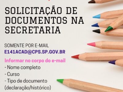 INSCRIÇÕES: 08/02/2021 a 19/02/2021Ler o Edital na íntegra (04 páginas)Não serão aceitas inscrições sem a documentação enviada para o e-mail e141acad@cps.sp.gov.brLink do Edital