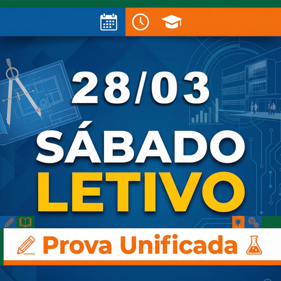 Aos alunos e responsáveis, informamos que neste sábado (28/03) será dia letivo, havendo aplicação da Prova Unificada. Ressaltamos que a presença é fundamental, e os alunos devem comparecer para realizar a prova no horário especificado abaixo, de acordo com o seu período de aula.